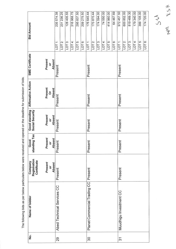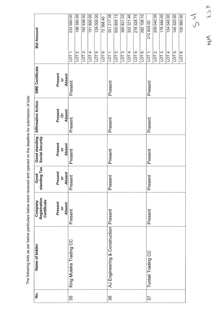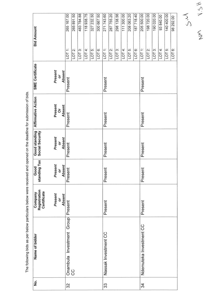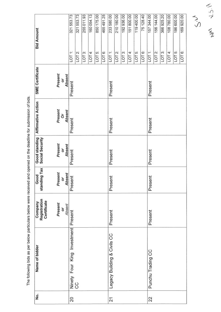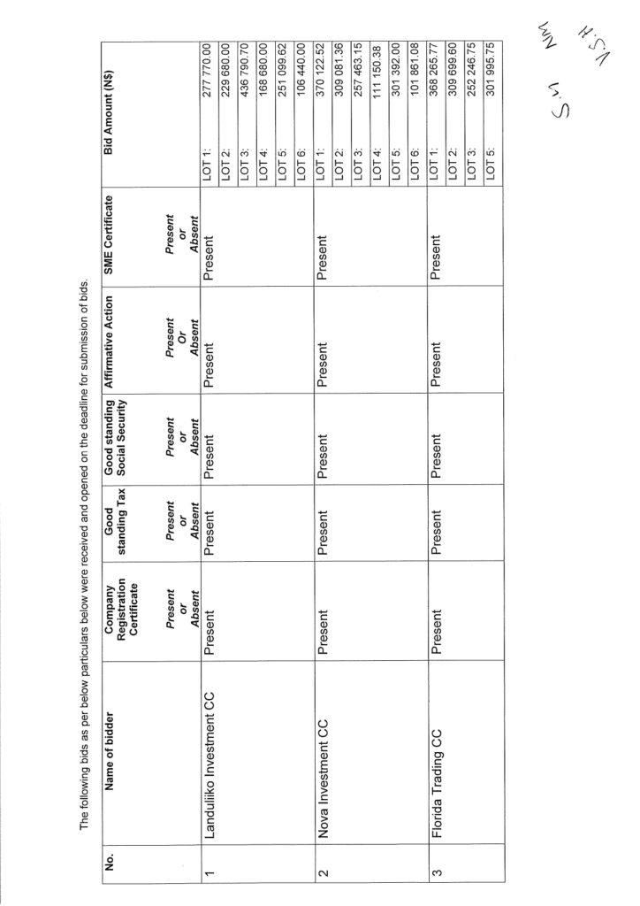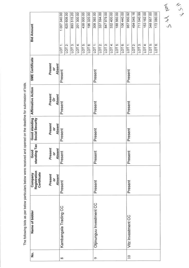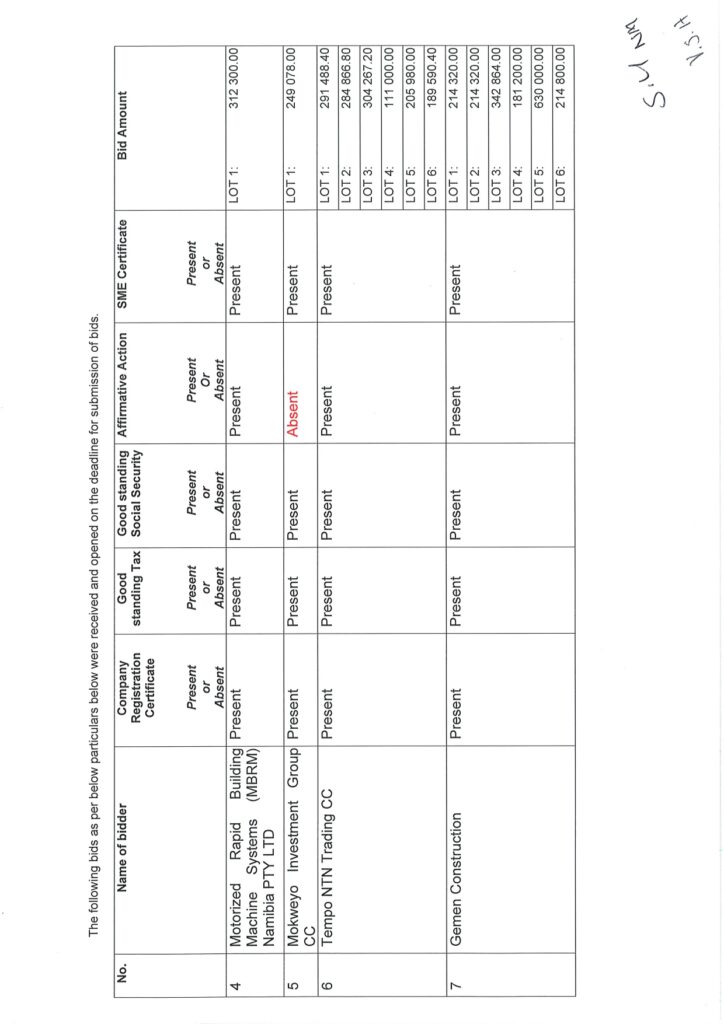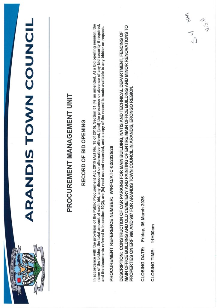 BID OPENING REPORT: CONSTRUCTION OF CAR PARKING FOR MAIN BUILDING, NATIS AND TECHNICAL DEPARTMENT, FENCING OF MAIN OFFICE BUILDING AND OLD CEMETERY AND PAINTING OF ENTIRE MAIN OFFICE BUILDING AND MINOR RENOVATIONS TO PROPERTIES ON ERF 986 AND 987 FOR ARANDIS TOWN COUNCIL IN ARANDIS, ERONGO REGION.